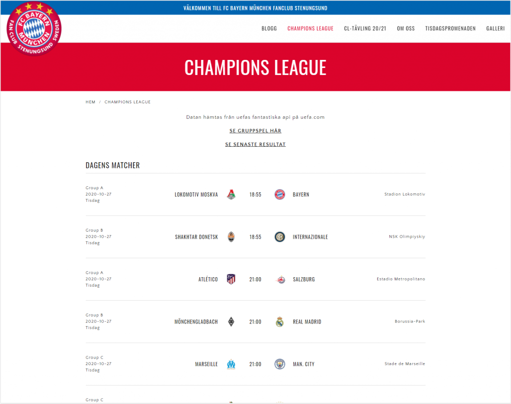 Och nu så här i Champions League tider så passar på att slå ett slag för all funktionalitet kring champions league matcherna. På länken nedan så finns livescore för dagens matcher. Gå gärna in och kika. Uefa brukar 2h innan avspark släppa startelvorna. Klicka då på den gröna länken ”lineup” för att se en grafik över trupperna.